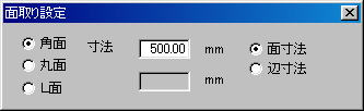 1・メニューの「ツール」より「面取」を選びます。すると画面上に下記のダイアログが表示されます。