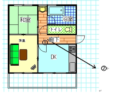 を押して、間取りの中央から左右同時にクリックしながら右下までドラッグしていきます。