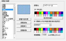 左側のリストで選択した部屋の情報が右側の部屋名や、中に色をつけるかどうかとその色、模様をつけるかどうかと、模様の種類、色が表示されます。