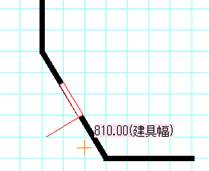 マウスを壁に近づけると壁の端に吸着するので、まずそこで1点目をクリックします。さらに2点目をクリックします。向きを間違えたら右クリックで戻ります。