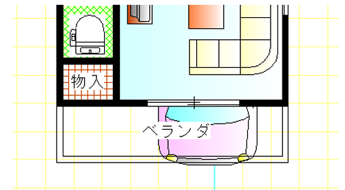 間取りっどはレイヤー番号の小さい順から描画されます。もしあるレイヤーを上の方に描画したい場合は、「選択物のレイヤー変更」や「レイヤーの移動合成」などでレイヤー番号を変えて(大きく)ください。