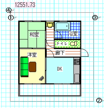 間取りを囲むように、1点目を左クリックし、ドラッグせずに範囲を決めて対角を左クリックします。