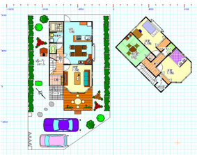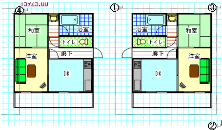範囲を選択し、ドラッグで移動、編集や右クリックメニューでコピーする方法については説明いたしました。次に説明する囲った範囲を移動したり複写したり反転するのは、主にマンションやアパートなど、同じ間取りを連続して並べたり、部品を配列するのに便利です。 囲った内容は同レイヤーグループ内でのみ有効です。