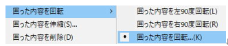 「囲った内容を右90度回転」はこの動作と逆に時計回りに90度回転します。