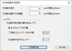 寸法線を作成するレイヤー・・・寸法線を出力するレイヤーを指定します。デフォルトでは編集中のレイヤーになります。