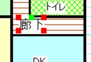 を押してオブジェクト(部屋や文字や線など)をクリックします。そして選択されたオブジェクトには、ハンドルが現れます。そのままドラッグするとオブジェクトが移動します。