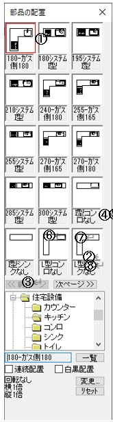 で、左図@のフォルダの「住宅設備」「キッチン」を選んで下さい。