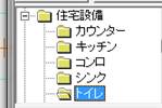 では「住宅設備」から「トイレ」のフォルダ、その中の「トイレ2」を選んでください。「トイレ2」は左向きの部品ですので、部品の向き・大きさを変えずにそのまま画面上のトイレの場所に配置してみて下さい。