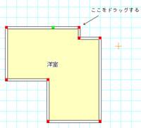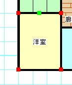 洋室の左下のハンドルをドラッグしてみてください。部屋が大きく引き伸ばせます。