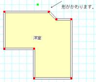 多角形部屋作成で作成した部屋は角ごとに伸縮で形を変えることが出来ます。