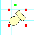 「伸縮・回転」をONにして部品や文字の右上の緑のハンドルをドラッグすると、部品が回転します。部品配置で「住宅設備」の「トイレ」「トイレ2」を配置し、緑のハンドルを回転してみてください。(吸着は線吸着のみONにしてください