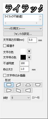 ・7つの中から、縁付文字の形状を選びます。「傾き」で形状の傾きを9段階で調整します。
