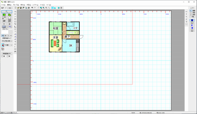 (「ツール」「図面中心点変更」で「廊下」の文字の左横くらいをクリックします。赤い枠が中心点変更後の用紙のイメージになります)