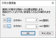 全体表示の用紙イメージと実際に印刷したものの位置がずれている場合、「ファイル」「印刷位置調整」にて、mm単位で上下左右にずらせます。