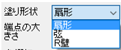 円弧の作図図形の設定で扇形と弦と曲線壁(R壁)(参)の選択ができます。