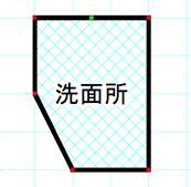 3点目をクリックすると、頂点間の壁が削除されて、部屋が曲線上に変形します。