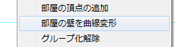 右クリックメニューから、「部屋の壁を曲線変形」を選びます。