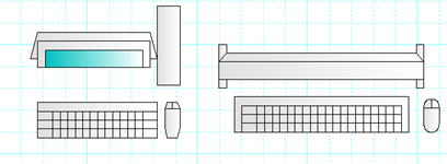 「多角形」と「四角形」で液晶ディスプレイを作成し、「四角形」「直線」コマンドで、キーボードに手を加えましょう。