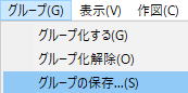 登録したい図形を選択した状態で、「グループ」「グループの保存」とクリックします。
