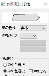ツールを選び、「作図図形の設定」で、「中の色の選択」をクリックします。