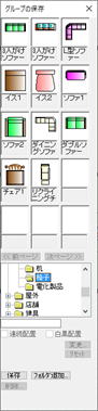 例として、部品配置で「家具」「椅子」より「ソファ1」を配置し、これを「グループ」「グループ化解除」してみてください。